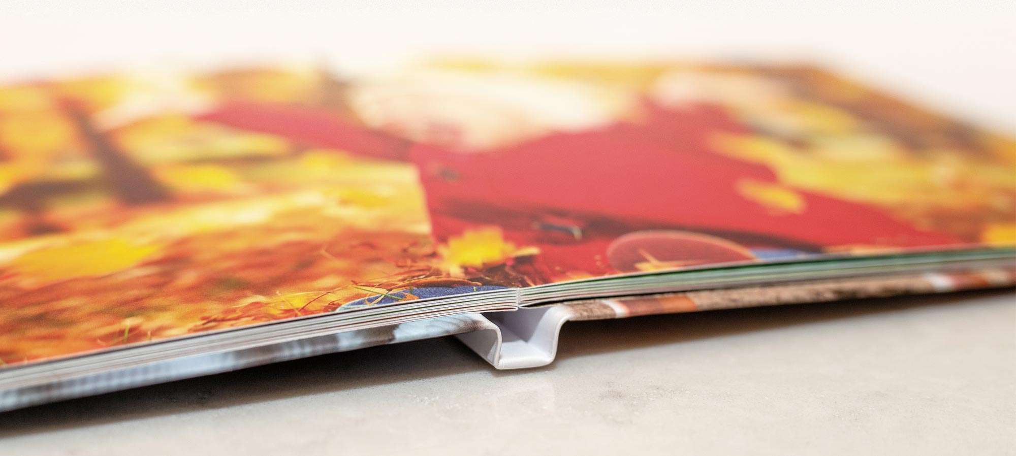 A lay flat book simply put is a type of book binding technique that lays completely flat when opened on a surface. When you open a lay flat book, there is no gap or gutter (the gutter of a book is the blank space where the left and right pages meet) between the pages. This means that you can create a book with seamless, high impact double-page spreads.